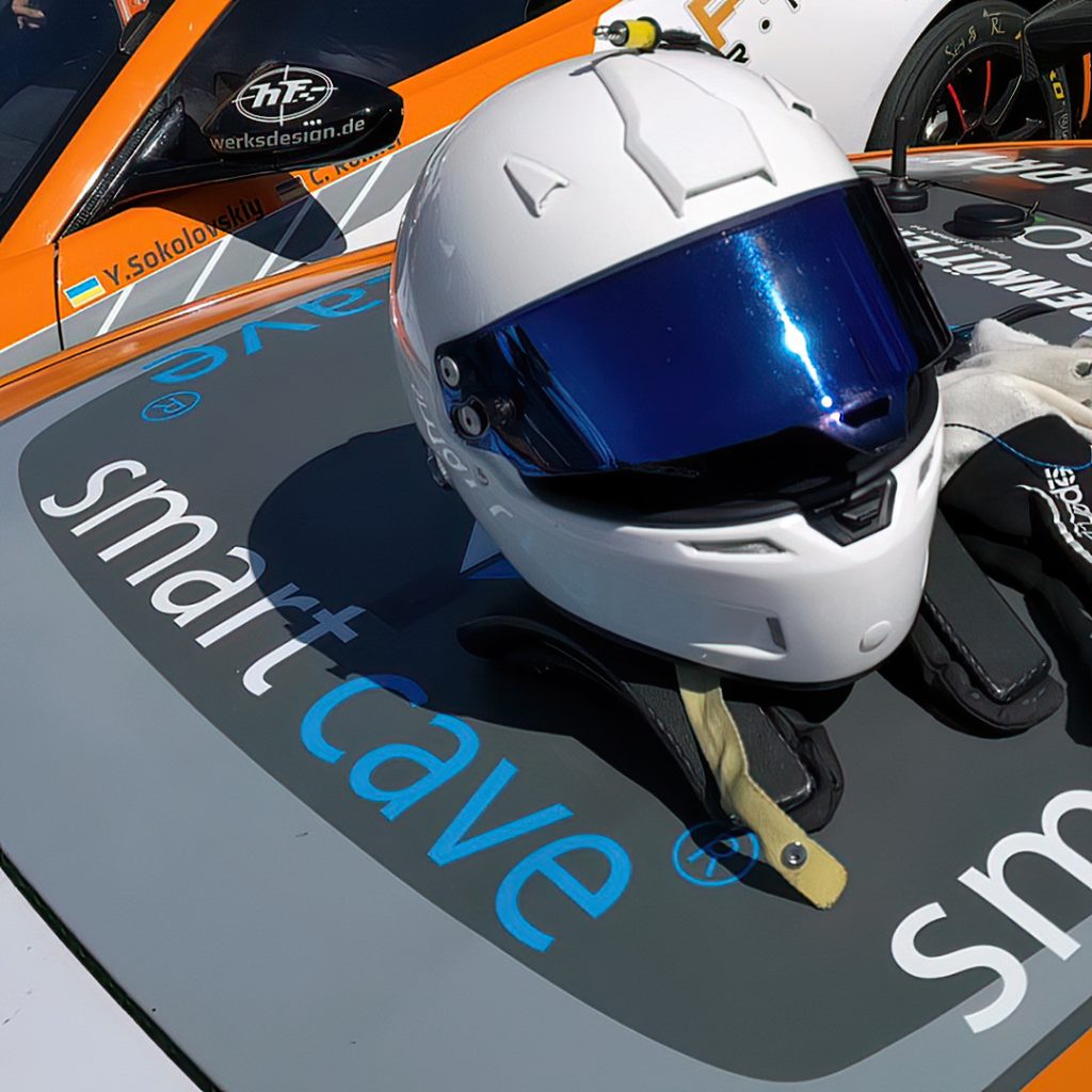Wir sponsern nicht nur, wir sind ebenfalls vor Ort. Direkt über dem Fahrerlager ist die Loge von PROsport, wo wir heute eine kleine Installation unserer SmartCave aufgebaut haben. Auf den Bildern testen wir unsere Installation noch. Da passen wir uns an den Rennbetrieb an. Auch wenn wir es ein wenig gemütlicher und das Catering direkt in der Nähe haben.